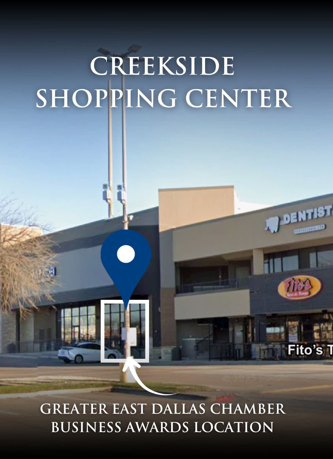The event center is between Zato Thai and Fito's Tacos. All spaces in the parking lot are available for parking. Balloons will be at the entrance for visible reference.